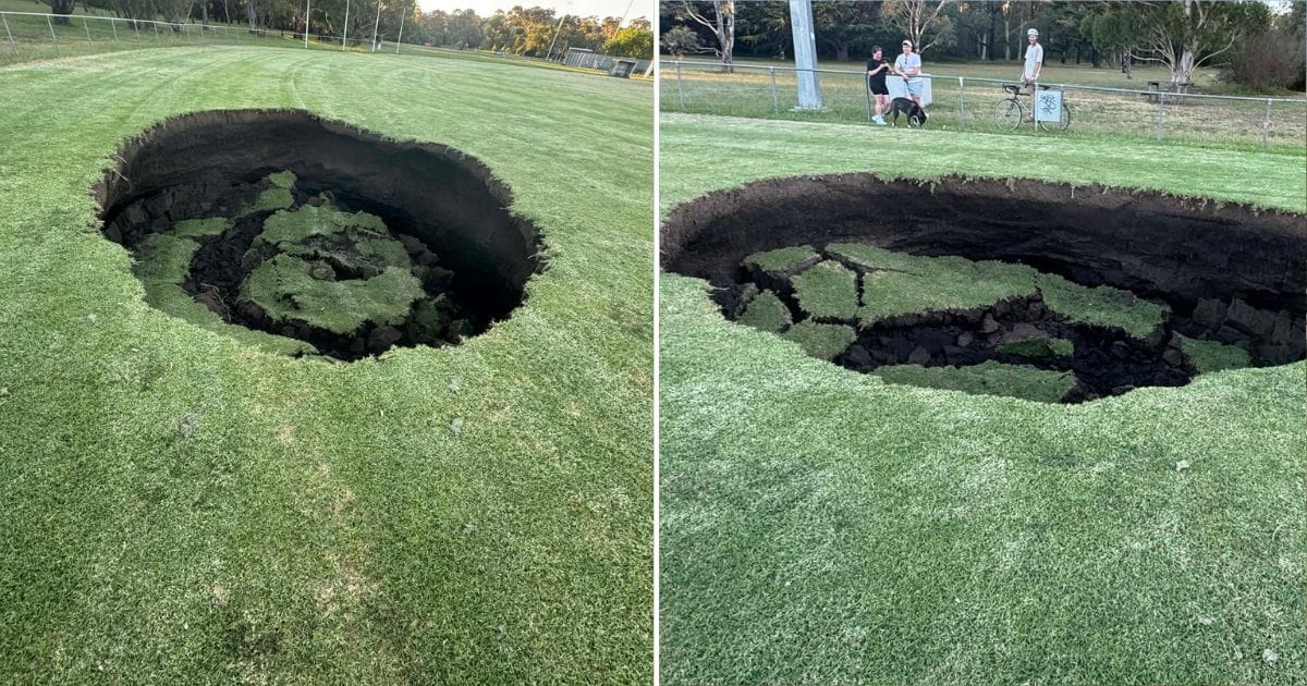 A massive sinkhole several metres wide has appeared in Melbourne’s eastern suburbs, drawing crowds of onlookers.